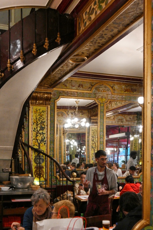 Naše jídlo jsem bohužel zapomněla vyfotit – ale můžu potvrdit, že vejce mimóza i můj steak byly skvělé. Příjemné je, že zůstala zachovaná i tradice velice mírných cen. Díky nim a díky své slavné historii je bouillon stále plný a před dveřmi se často vine fronta hladových hostů. Doporučuji proto rezervaci přes stránky Pharamondu, abyste nemuseli přešlapovat před venku půl hodiny jako my.