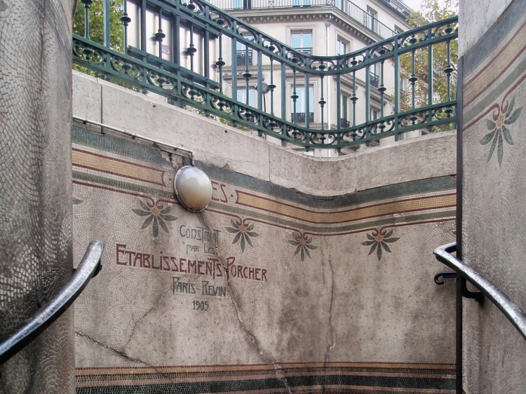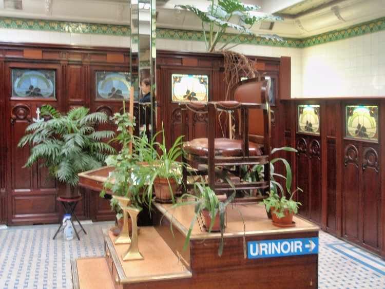 .. jsou to secesní toalety. Vlevo dámy, vpravo páni. Tyto společné toalety byly původně jen dámské, ty pánské ležely o kus dál a dnes jsou zavřené. Proslýchá se, že pařížská radnice hodlá zavřít i tyto. Mimochodem – na to, jak jsou staré, jsou udržované a čisté.