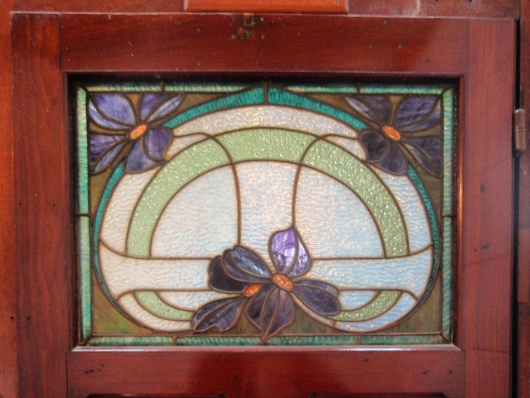 Dveře každé kabinky jsou ozdobené touto krásnou secesní vitráží.