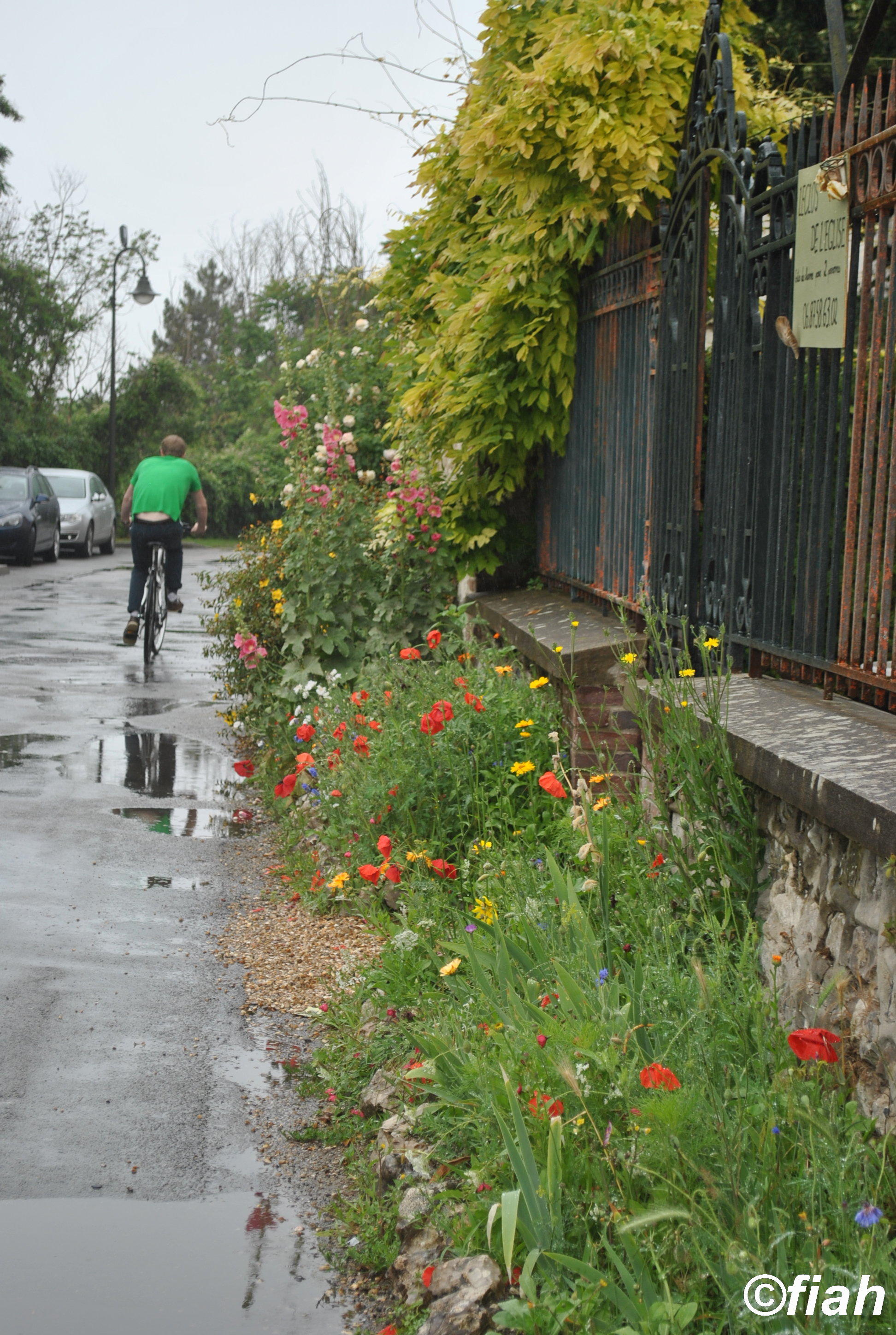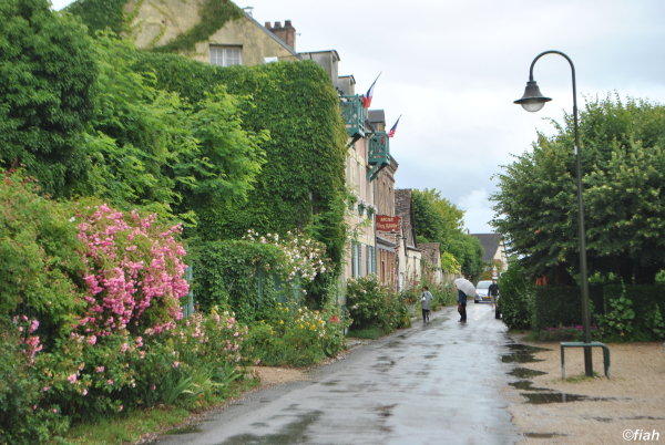Hlavní silnice v Giverny. Všechny domy jsou tu krásně upravené, plné květin a dekorací. Zahrady svou úpravou připomínají tu Monetovu. Celé městečko žije z Monetovy památky, dnešní obyvatelé už dávno zapomněli, jak jejich předci protestovali proti budování Monetovy zahrady, především jezírka s lekníny, protože se báli, že jim ty podivné rostliny toho cizího přistěhovalého malíře otráví vodu v potoce, který z jezírka vytéká.