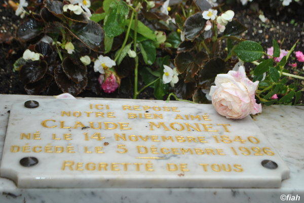 Jen o kousek výš leží hrob s bílým křížem, kvůli kterému sem váží cestu většina lidí. Právě tady, uprostřed ostatních členů své rodiny, leží Claude Monet.