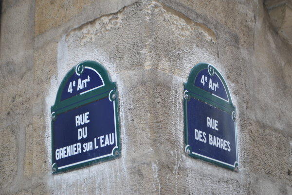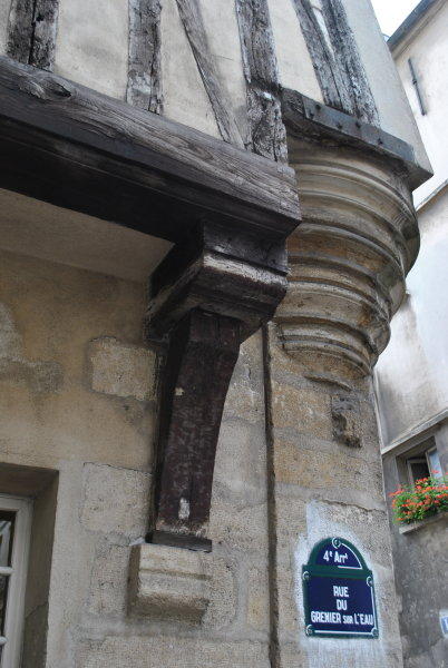 Další domy podobného typu najdeme hned za rohem, za kostelem Saint-Gervais. V úzké uličce Rue des Barres, kterou kříží Rue du Grenier su l´Eau, dobře vidíme, jak vypadala středověká Paříž.