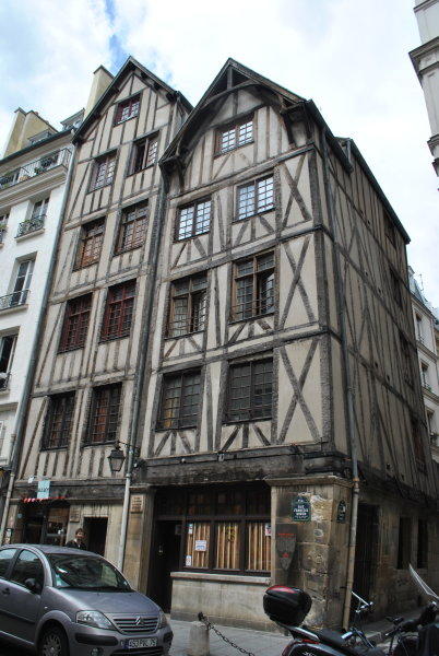 Tyto hrázděné domy byly dlouho považovány za nejstarší ve městě, později však bylo zjištěno, že sice stojí na základech ze 14. století, ale pocházejí až ze 17. století. Jsou to jedny z posledních domů v Paříži, jejichž štít je obrácen do ulice, později se tak domy už nesměly stavět.