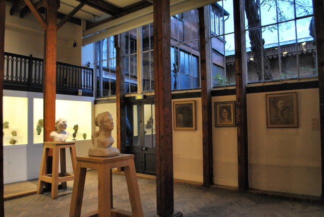 Pohled do Bourdellova ateliéru. Jsou zde vystavena některá jeho menší díla, ale i pracovní nářadí, pomůcky i jeho pracovní oblečení