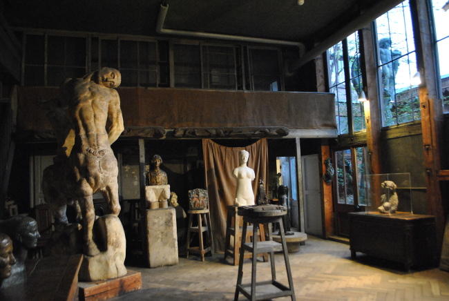 Pohled do Bourdellova ateliéru. Jsou zde vystavena některá jeho menší díla, ale i pracovní nářadí, pomůcky i jeho pracovní oblečení