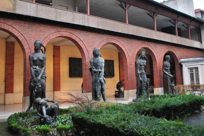 Už z ulice jsou vidět červené arkády, které rámují malou zahradu, postavené v roce 1951 z cihel z Montaubanu, Bourdellova rodného města. Pod nimi i v zahradě jsou vystaveny některé plastiky.