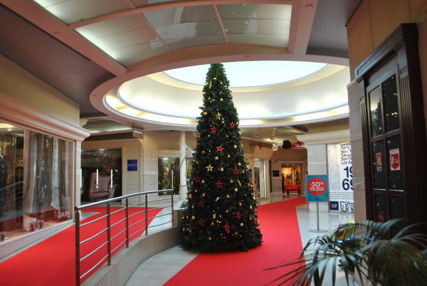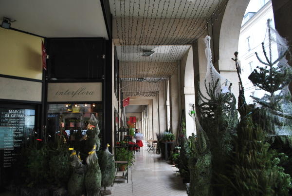 Před Vánoci byla část arkád kolem místního květinářství doslova obestavěná vánočními jedličkami