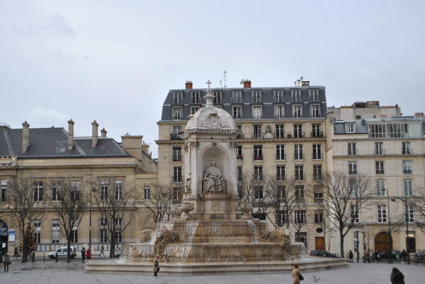 Na rozlehlém náměstí před kostelem Saint-Sulpice stojí Kašna čtyř biskupů, postavená v roce 1844 architektem Viscontim.