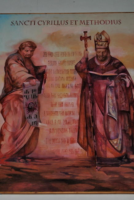 Protože v kostele nebyla žádná socha ani obraz sv. Cyrila a Metoděje, mladý chorvatský malíř Veljko Vidak namaloval tento obraz, který byl odhalen 14. února 2009, kdy oba svatí slaví svůj svátek podle francouzského kalendáře. Na obraze je hlaholicí napsaný text Otčenáše.