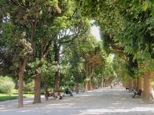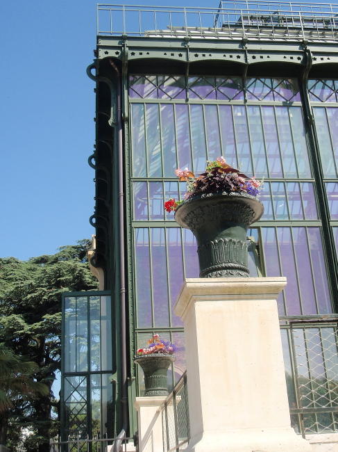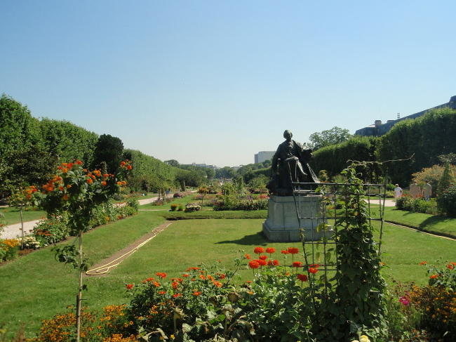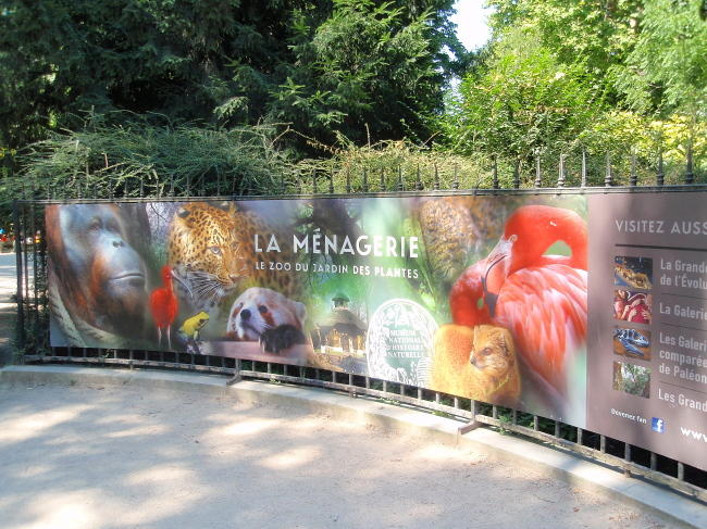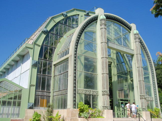 My do zahrady vstoupíme od Seiny, z place Valhubert, kde se před námi otevře centrální alej s vyhlídkou na Grande galerie de l´évolution, Velkou galerii evoluce, která je jednou z částí Národního přírodovědeckého muzea, které v zahradě sídlí a jehož sbírky jsou rozmístěny ve všech budovách, které zahradu lemují.