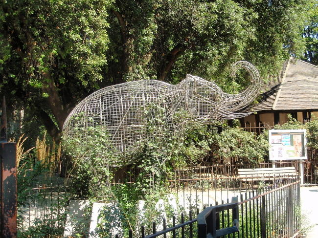 Po pravé straně leží tzv. Ménagerie – zoologická zahrada. Pro nás, rozmazlené různými africkými domy, novými sloninci a rozsáhlými výběhy, je to ovšem poněkud smutná podívaná, zvířata tady žijí dost natěsnané a klece a výběhy jsou poměrně malé.