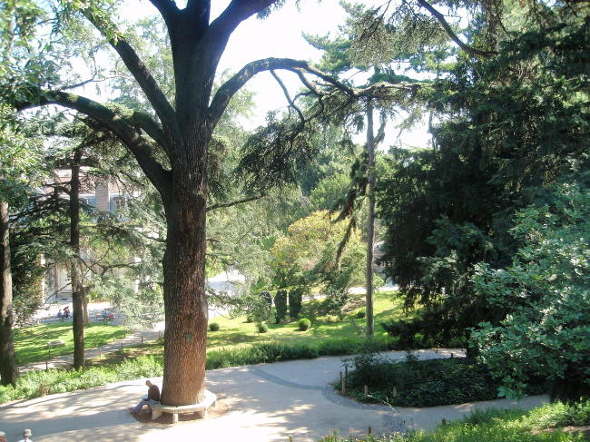 Za skleníky směrem k rue Cuvier začíná mírně kopcovitý terén s labyrintem a vysokými stromy. Najdeme tady i první libanonský cedr vysazený ve Francii, který tady roste od roku 1734, a další vzácné stromy.