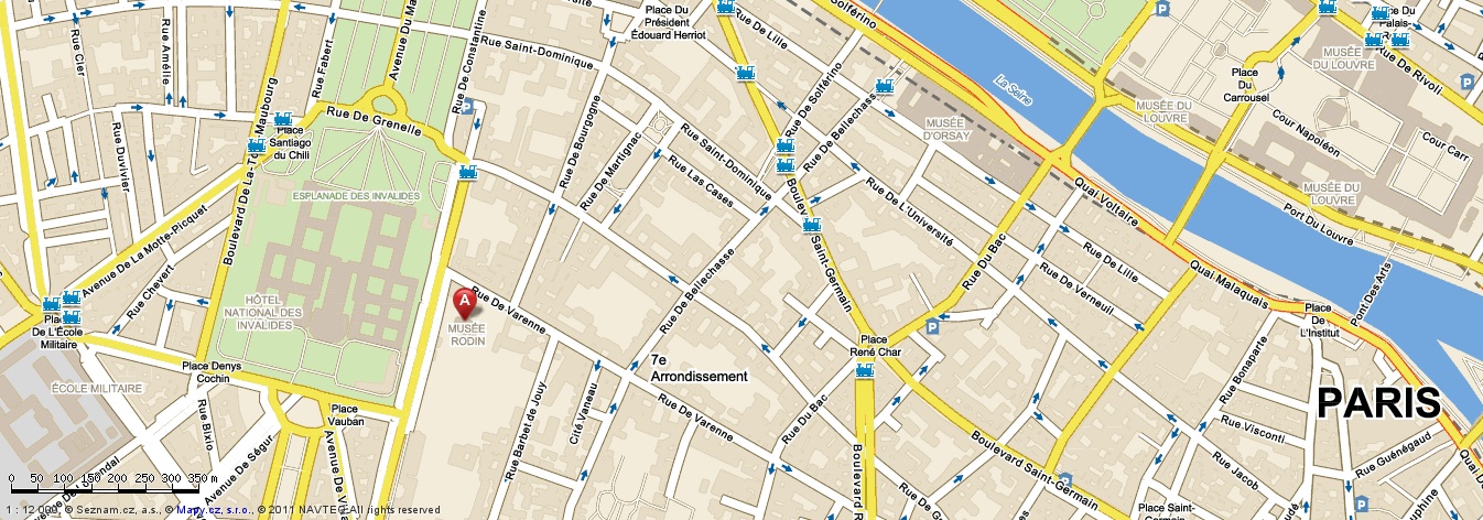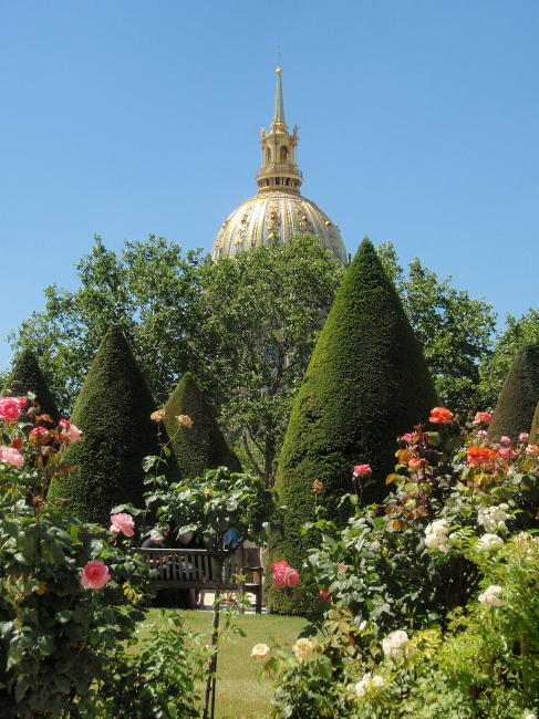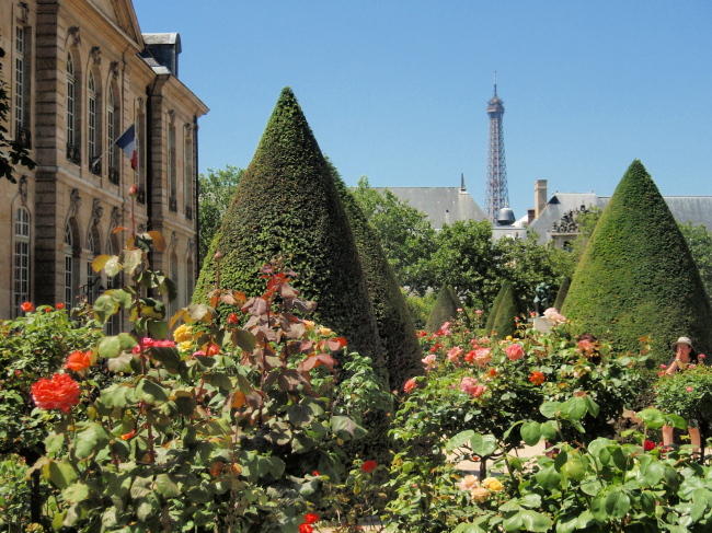 V přední části zahrady před palácem jsou umístěny některé rozměrné Rodinovy plastiky – především monumentální šestimetrová Brána pekel, kterou Rodin začal tvořit na zakázku v roce 1879 pro Muzeum dekorativního umění – nikdy ji však nedokončil, vystavoval jen jednotlivé figury nebo dveře samotné a dílo bylo odlito z bronzu a zkompletováno až po jeho smrti v roce 1917.