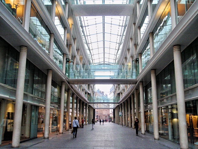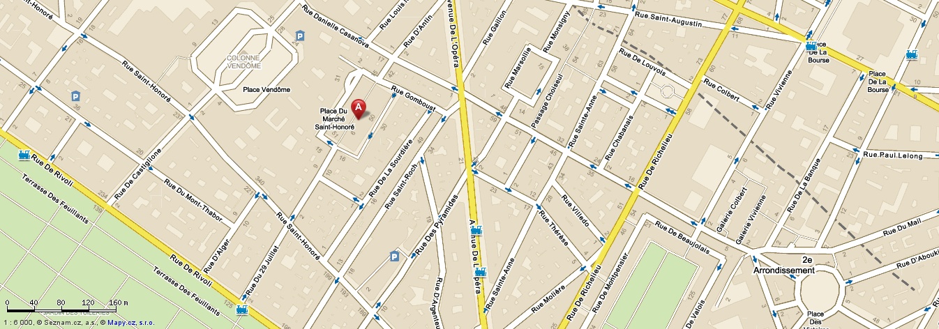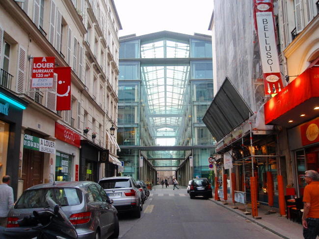 Jen pár kroků od luxusního náměstí place Vendôme leží další velké náměstí, o kterém tištěné průvodce mlčí. Jmenuje se place du Marché Saint-Honoré a ii když se samozřejmě slávě a významu place Vendôme rovnat nemůže, historicky zajímavé je bezpochyby také. Dnes náměstí dominuje ohromná skleněná stavba kancelářského a nákupního centra, které nahradilo dřívější tržnici z druhé poloviny 19. století. Vidět je už z dálky a na první pohled šokuje i z blízkých ulic svojí ohromnou skleněnou hmotou.