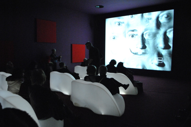 Tvar pohovky se také opakoval v improvizovaném kině, kde byly promítány různé rozhovory a krátké filmy. Ta průsvitná bílá v temné místnosti byla velmi působivá.