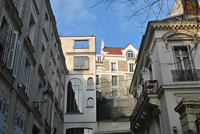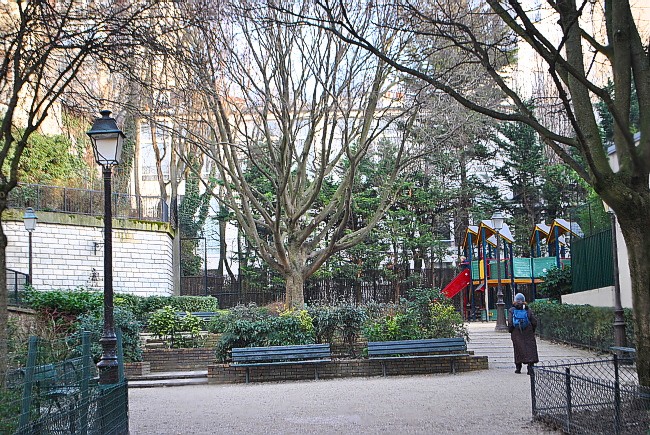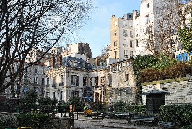 Z uličky vedle parku je hezký výhled na domy v ulici o úroveň výš. Mezi nimi se vyjímá bílo-béžový dům v rue Orchampt, v jehož posledních dvou patrech bydlela až do své smrti zpěvačka Dalida. Mimochodem, její stometrový byt byl nedávno na prodej – jedna realitní kancelář ho nabízela za „pouhých“ 2 350 000 Euro. Nekupte to za tu cenu.