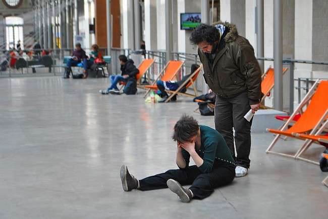 Tentokrát tady probíhala příprava na nějaký divadelní a taneční konkurs – ohromný sál byl plný soustředěných mladých lidí, kteří si buď něco přehrávali, nebo si opakovali taneční kreace.
