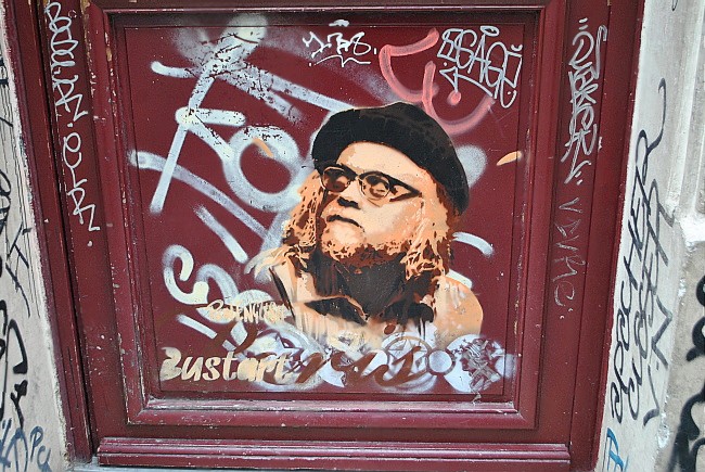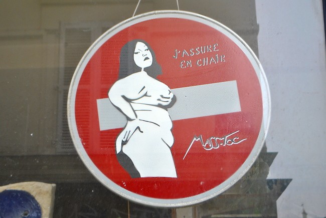 Dílo známé pařížské street artistky, která si říká Miss Tic (s tady navíc ještě umělecky zkomoleným jménem), vystavené v jedné z galerií v ulici