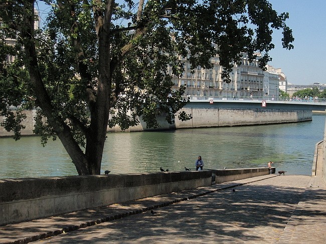 Ve vedru jsou příjemnější nábřeží ve stínu na severní straně ostrova – a nepochybuji, že to tady bude příjemné hlavně pro pány. Aspoň pokud jde o pohled na procházející Pařížanky.