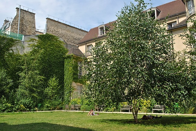 Pokud byste si při procházce ve čtvrti Marais chtěli odpočinout, mám pro vás tip na zajímavou, tichou a neznámou zahradu uprostřed města. Patří ke starobylému paláci Coulanges z roku 1634, ve kterém sídlí Maison de l´Europe, zabývající se evropskými otázkami a „evropským občanstvím“ (jak říkají jejich stránky).