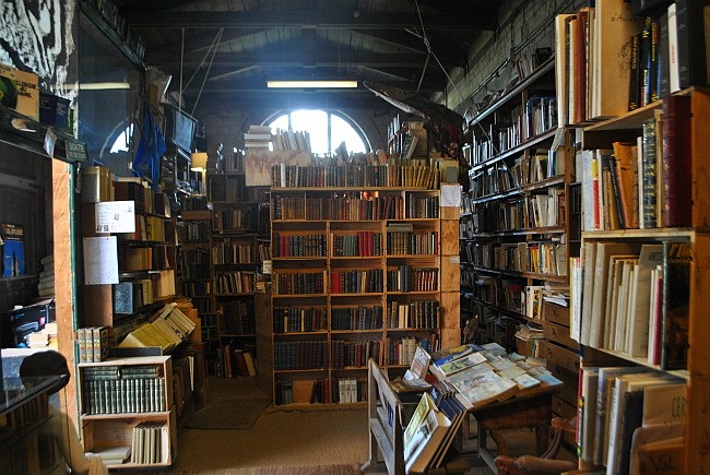 Dnes se ještě zastavíme u bývalého překladiště zboží, stojícího hned vedle nádražní budovy. Je plné starých knížek, stejně jako dva vagóny, stojící hned vedle. Originální antikvariát nese název La Caverne aux livres – Jeskyně s knihami – a vypadá to tam jako – no, jako v jeskyni s knihami. Můžete v ní bloudit podél dlouhých regálů a ochotný a milý majitel vám v těch tisícovkách svazků najde přesně to, po čem toužíte.