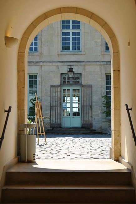 Právě v těchto místech leží i zadní vchod do zámku, kterým se dostaneme dovnitř na výstavu Cesta do časů impresionismu. Co si budeme povídat, výstava je zaměřená na turisty, kteří sem, do městečka proslaveného především malíři, jezdí. Podle popisu výstavy jsem nejdřív tak trochu nad tou komerčností ohrnovala nos, ale nakonec jsem byla mile překvapená a líbilo se mi to. Jak už to tak Francouzi umějí, výstava je dobře a zajímavě připravená a představuje nikoliv impresionismus jako takový, ale dobu, ve které vznikl – Paříž se svými uličkami, tančírnami a bistry, ale také běžný život obyčejných lidí té doby.
