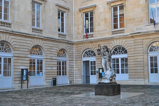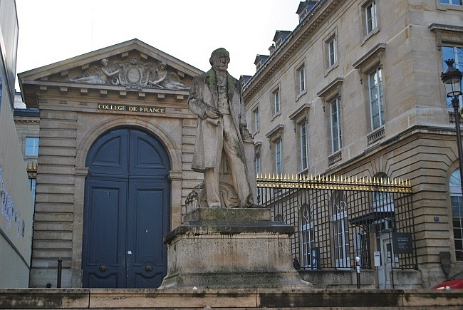Hlavní vstup do Collège de France se sochou Clauda Bernarda, zakladatele experimentální medicíny v 19. století. Jejím autorem je Raymond Couvègnes.