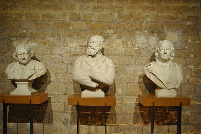 Doufala jsem, že uvidím některé historické prostory včetně krásného historického dvora nebo knihovny, ty však nejsou běžně přístupné. Přednáškové sály jsou umístěny v suterénu a většinou zmodernizovány tak, že vypadají jako běžné auly. Podél nich leží tato stará chodba s bustami francouzských učenců (nevím, kdo je kdo).