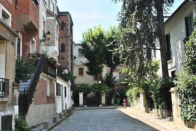 Jen o kousek níž odbočuje z avenue Junot krátká slepá ulička villa Leandre, plná úzkých domků, které tak trochu připomínají uličku někde v Anglii