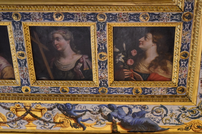 Středová malba je lemována obrazy osmi věštkyň. Plátna pocházejí z oratoře královny.