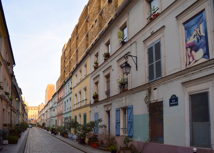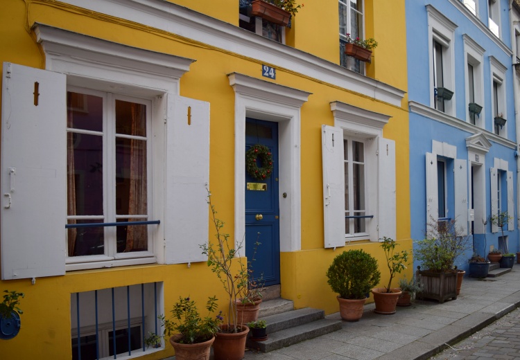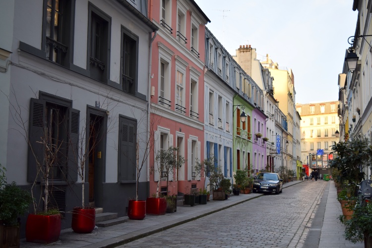 O rue Crémieux jsem na blogu už před pár lety jednou psala a všechny podrobnosti a fakta najdete TADY. Ulička je tak půvabná, že do ní zamířím pokaždé, když jsem v její blízkosti. Nenechala jsem si ji ujít ani nedávno cestou do restaurace Train bleu na Lyonském nádraží, kterou jsme tady viděli minule, a tak vás dnes znovu pozvu na procházku mezi pohádkové barevné domečky, seskládané do úzké staré uličky, zmáčknuté mezi dvě rušné a banální ulice poblíž nádraží. Na rozdíl od okolí se ale tady v rue Crémiuex zastavil čas.