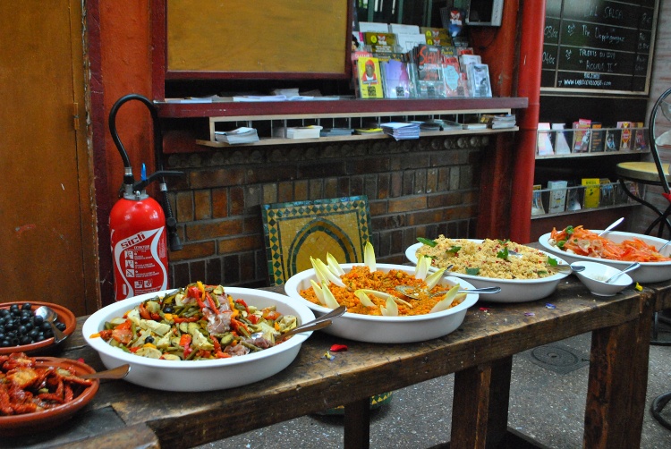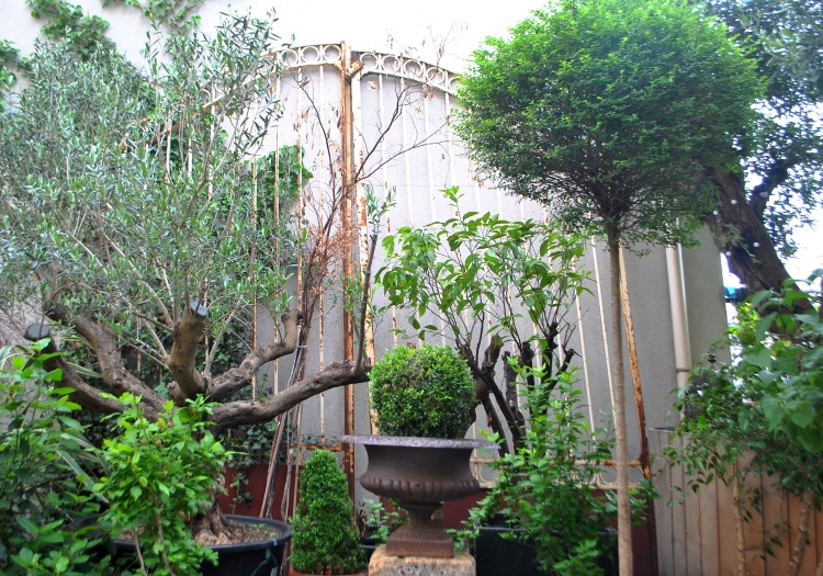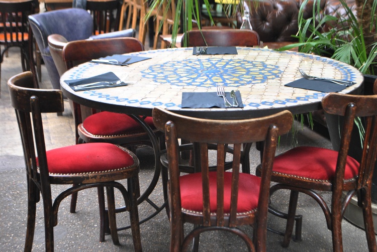 Důvodem, proč jsem vás sem dnes přivedla, je tato místní restaurace. Najdete ji po levé straně budovy za obyčejnými hnědými plechovými vraty, které vás přivedou na malý dvorek plný zeleně, ze kterého se vstupuje do neformálního pestrého prostoru, zaplněného starými olivovníky a palmami. Vaří tady šéfkuchař, vyučený u slavného hvězdičkového kuchaře Alaina Ducasse, a přesto má restaurace vcelku přístupné ceny. Otevřeno je ve středu, ve čtvrtek a v pátek jen večer, v sobotu a v neděli i v poledne.