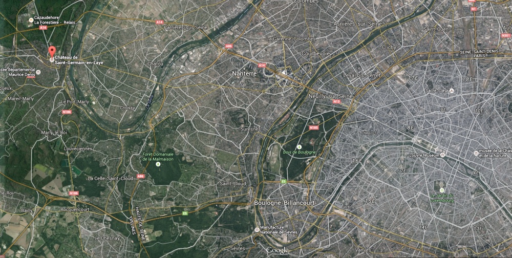 Jak se tam dostat: RER A až na konečnou Saint-Germain-en-Laye nebo autobus 258 z La Défense (pozor, červené číslo, ne žluté, to má jinou konečnou)