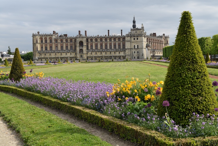 Anglický park se svými 60 hektary sahá daleko za město a je protkaný cestičkami, rozlehlými trávníky a různými zahradními stavbami. V podobě, jak ho vidíme dnes, byl vytvořený v první polovině 19. století, poté, co při stavbě železnice z Paříže byla velká část parku poškozená a přímo jeho prostředkem v hlubokém a širokém kaňonu vedly koleje (nádraží stálo těsně vedle zámku). Koleje i s nádražím byly později překryty a park byl v té části znovu obnoven.