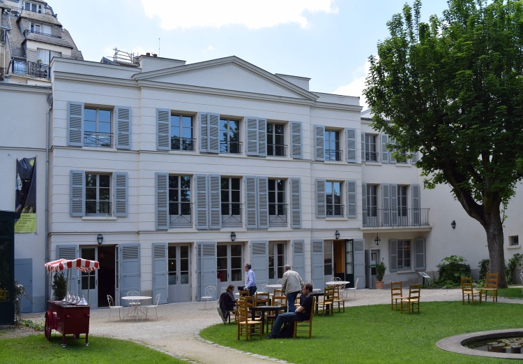 V nově zrekonstruovaném domě se momentálně upravují přízemní prostory, kde míval svůj obchod s barvami Père Tanguy, obchodník a přítel všech impresionistů i postimpresionistů. Jeho druhý obchod pod Montmartrem jsme už viděli (i s jeho životopisem) TADY. Obchod s různými (bohužel asi i dost turistickými a upomínkovými) předměty by měl být otevřen co nejdřív. V novém přístavku byla vybudovaná i kavárna se stolky kolem kruhového bazénku.