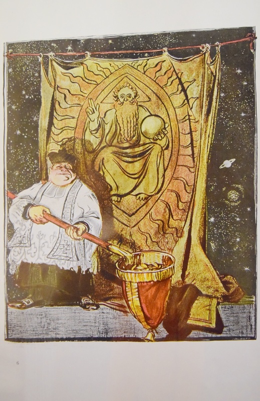 Další Kupkova ilustrace: Kněz s podběrákem plným zlata, 1904