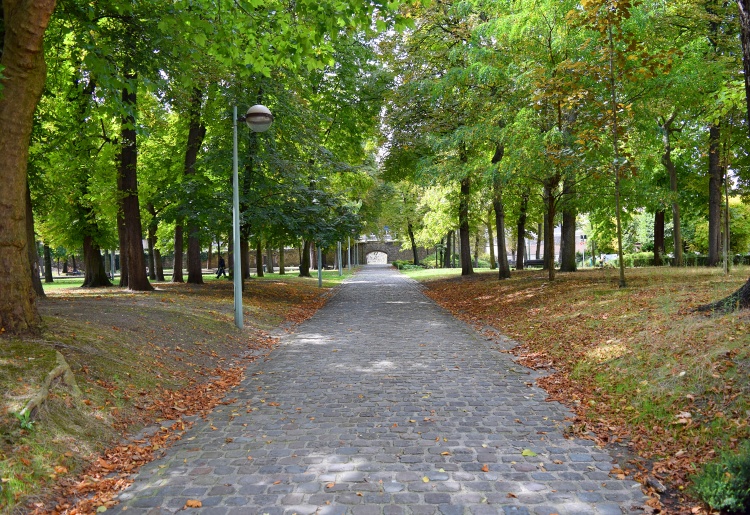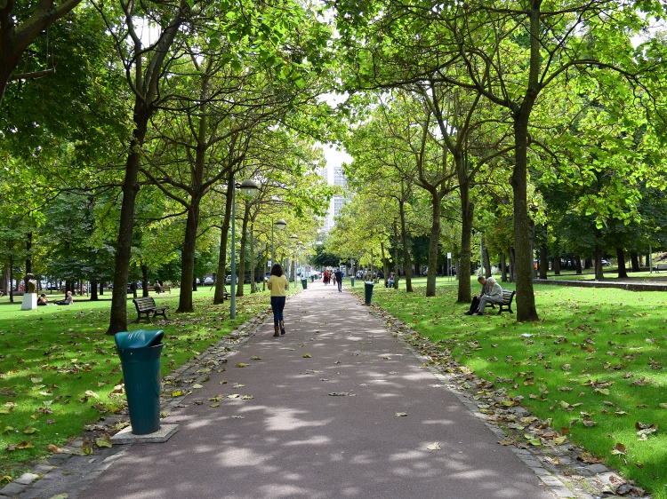 V dálce za parkem vidíme nové budovy moderní části nemocnice