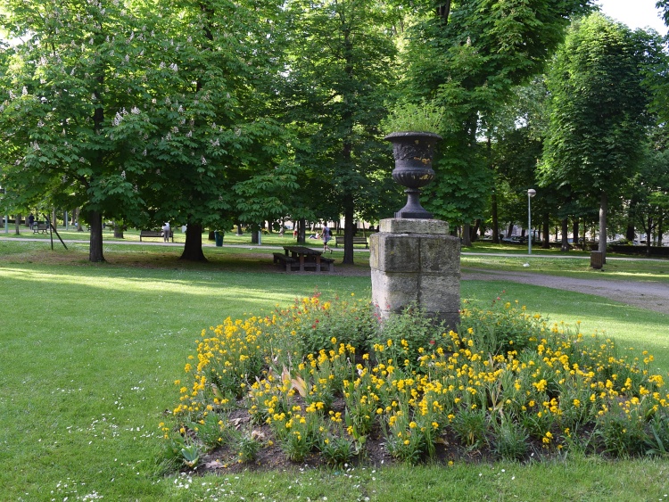 Tentýž park jako nahoře, jen v jarním provedení a celý v květu