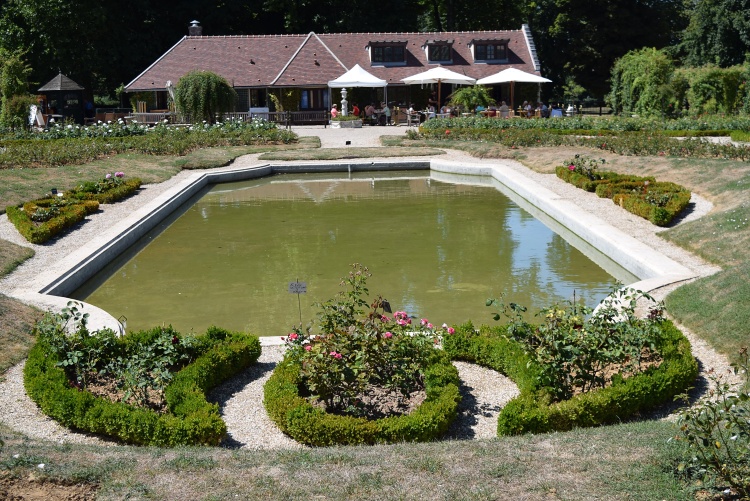 Ve střední části zahrady vytvořili architekti jezírko lemované na vzdálenějším konci kamennou zídkou s altánkem uprostřed. Kolem jsou vytvořeny záhony s vzácnými druhy růží.