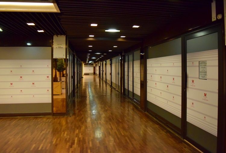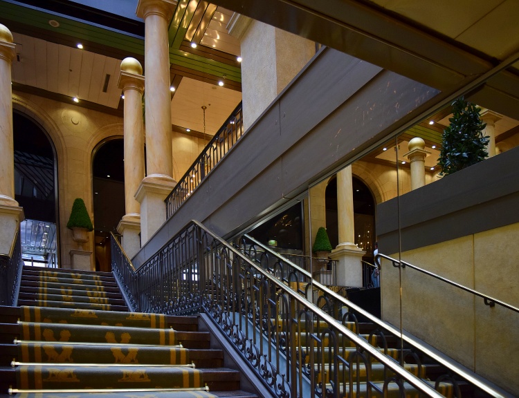 Pokud člověk udělá čelem vzad, naskytne se mu jiný pohled – na řady prázdných obchodů, mezi kterými se až bojí. I tady však funguje plně osvětlení a uprostřed té prázdnoty pod skleněnou střechou tiše popojíždějí schody do prvního patra, kde ve šťastnějších dobách fungovaly další obchody i výstavní sály (jednou jsem tady viděla zajímavou výstavu o historii opia, se všemi starožitnými pomůckami, které k jeho používání byly potřeba).