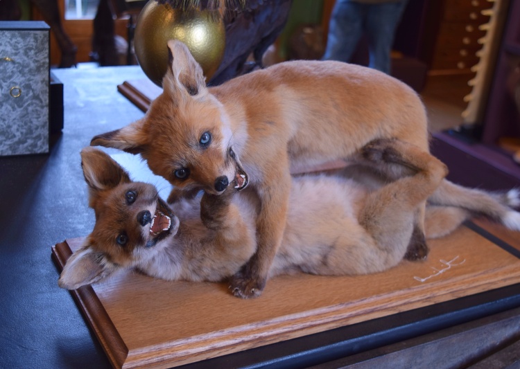 Obchod je rájem sběratelů a dětí. V přízemí najdeme nejrůznější literaturu a učební pomůcky, ale to nejzajímavější nás čeká v prvním patře, kam vystoupáme po starodávném schodišti. V několika místnostech najdeme ve vitrínách sbírky motýlů a brouků, ale i minerálů, a každý koutek prodejní plochy je zaplněný vycpaninami. Nepředstavujte si ovšem obligátní lasičky nebo veverky, jak je známe z hodin přírodopisu, tady na nás hned v první místnosti číhají nosorožci, medvědi nebo zebra, o pár metrů dál ohromný černý býk, stádo jelenů, klokaní rodinka nebo vlčí smečka, a prodejními pultu vévodí s vyceněnými zuby statný lev. A to nemluvím o doslova desítkách vycpaných ptáků a hlodavců, vypreparovaných plazů nebo hmyzu a o různých kuriozitách jako jsou kostry zvířat, koráli, ulity nebo lastury.
