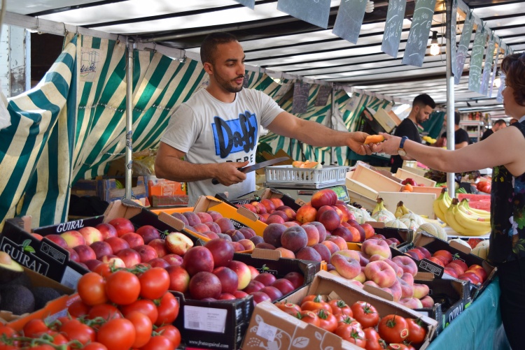 Samozřejmě se na trhu i dobře najíte – kromě stánků se slanými i sladkými palačinkami tady můžete ochutnat třeba paellu, nabízenou v ohromných pánvích, různé sendviče s místními specialitami, francouzské nebo italské lahůdky, ale taky hotová jídla různých národních kuchyní. Je to ideální volba, kam se vypravit na rychlý a levný oběd.