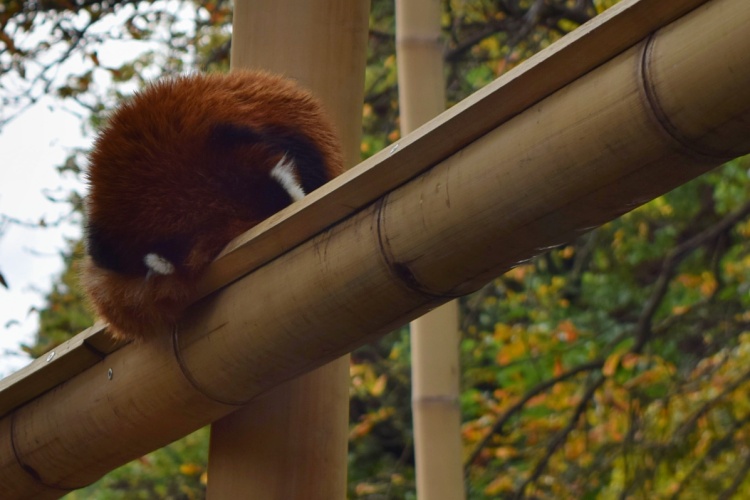 Z bývalého bezpečnostního příkopu u medvědího výběhu byl vytvořen výběh pro červené pandy, kterými se ménagerie pyšní. Pokud máte štěstí, že jsou venku, musíte mít ovšem ještě další kliku, aby se pohybovaly. Tu my jsme neměly a proto jsme z nich viděli jen zrzavé chlupaté kuličky vysoko na bambusové konstrukci.
