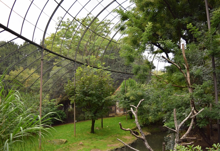 Koncept voliéry, kdy se přes dvojité dveře dostanete přímo dovnitř obrovské klece s ptáky, se mi zdál zajímavý, bohužel všichni obyvatelé byli skryti ve větvích tak důkladně, že jsem nikoho z nich nezahlédla
