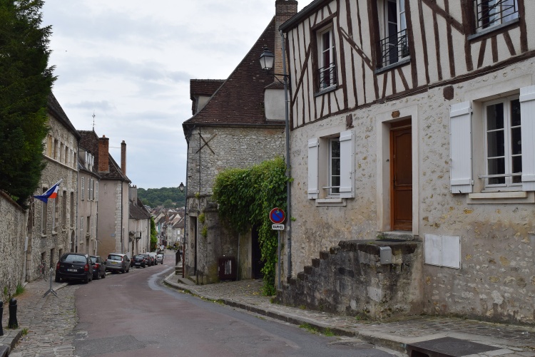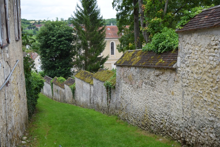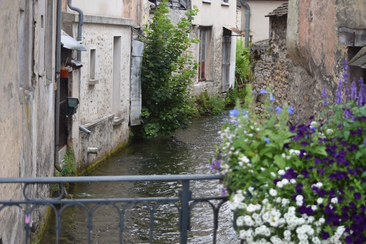 Z horní středověké části města Provins, kterou jsme TADY viděli minulou neděli, je krásný výhled na dolní město, ležící pod kopcem kolem říčky Voulzie. Sbíhá do něj shora několik cest, lemovaných starými kamennými, částečně hrázděnými domy s temně hnědými střechami. Asi nejhezčí cesta dolů je po starodávné rue Saint-Thibauld, ze které odbočují nalevo dolů ze svahu nebo napravo nahoru uzounké uličky, kamenné schody nebo prostě jen vyšlapané stezky.