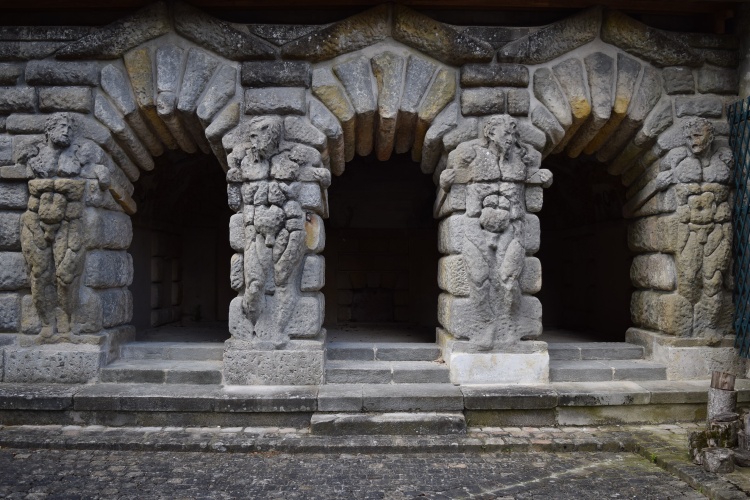 Součástí anglického parku je i renesanční grotta z doby Ludvíka XV. se zvláštními sochami Atlantů, vystupujících z kamene. Na grottu dříve navazoval lesík s mořskými borovicemi, ten během času však zmizel.