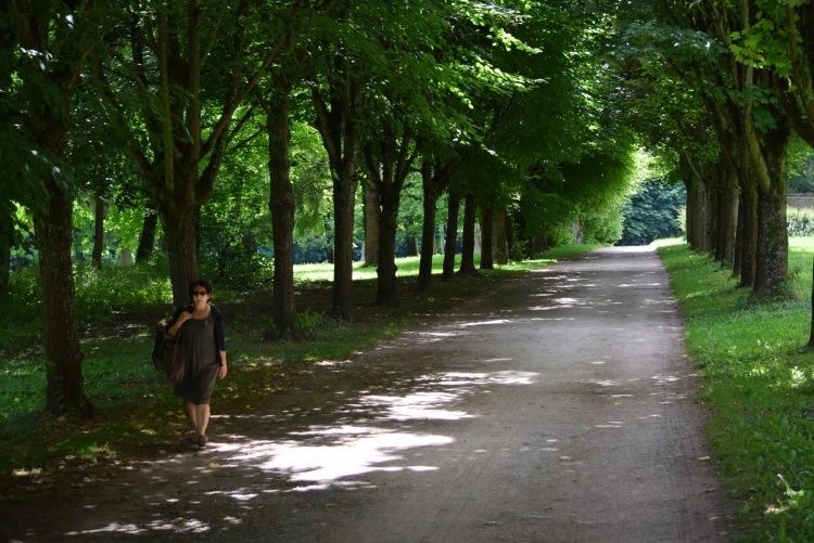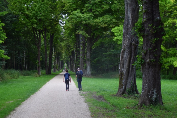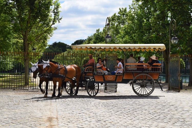 Po obou stranách kanálu se symetricky rozkládá další anglický park, vytvořený podobně jako ten, který lemuje i Velký kanál ve Versailles, jen je i se svými 130 hektary mnohem menší. Jeho rozměry však stačily k tomu, aby nás ponoukly k využiti místní atrakce – projížďky bryčkou. Trochu jsem si od toho slibovala i to, že z nadhledu budou fotky zas trochu jiné, aniž by mi došlo, že dřevěná kola na lesních cestách udělají z vozu spíš odstředivku, takže celkem mám z celé vyjížďky asi tak pět použitelných fotek z okamžiku, kdy vůz zastavil, všechny ostatní jsou rozmazané.