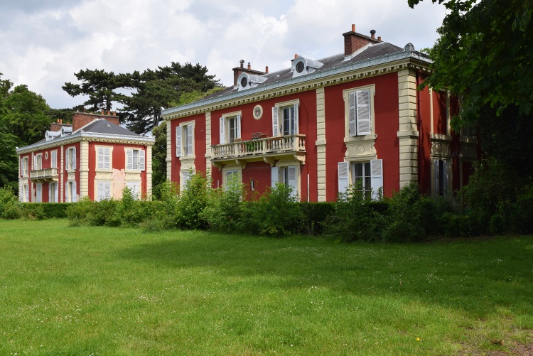 Na horních dvou fotografiích vidíme prosvítat mezi stromy červené zdi na západní straně jezera. Stojí tam dvě hezké budovy, postavené ve stylu Ludvíka XIII.