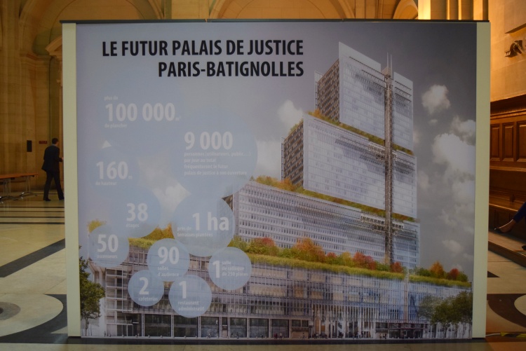 Nový Justicni palác by měl být dokončen v červnu 2017. Jeho definitivní podobu je možné najít na internetu, ale také si prohlédnout na velkém billboardu ve starém Justičním paláci na Île de la Cité (který se po zprovoznění toho nového nikam stěhovat nebude a zůstane tak, jak je).