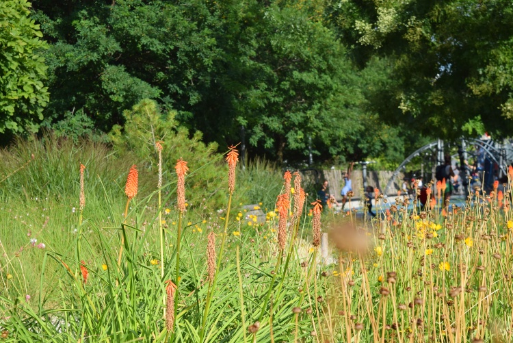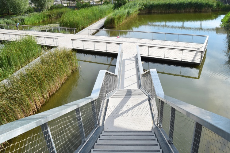 Stavby, které kolem parku vyrostly, tvoří město ve městě. Kromě obytných domů je tady škola a školka a další potřebné vybavení.